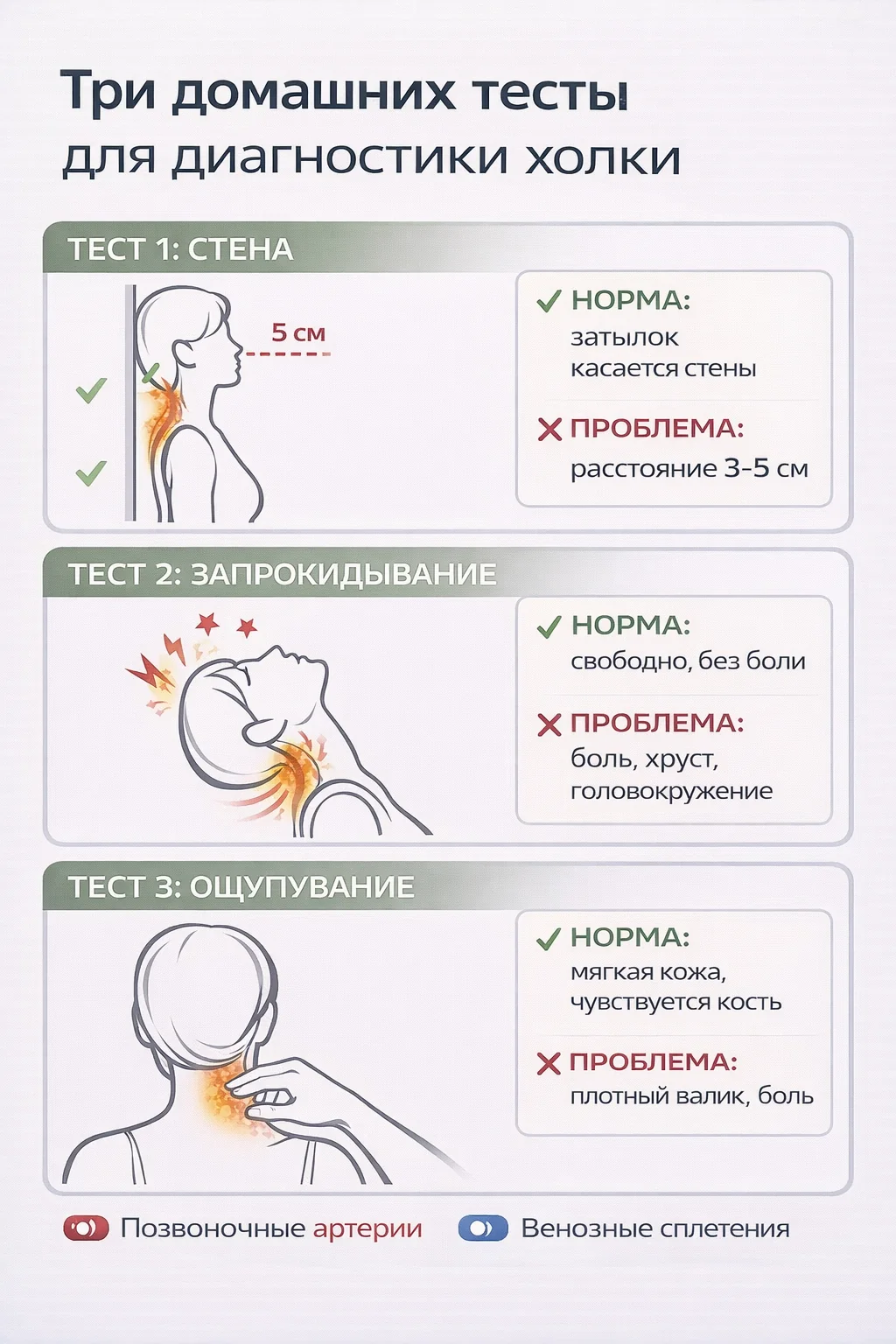 Прежде чем холка станет видимой, в шейном отделе происходят функциональные нарушения. Вот 3 теста, которые покажут проблему на ранней стадии: