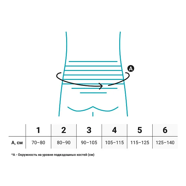 Измерьте окружность талии на уровне пупка. Сравните результат с таблицей производителя. При пограничном значении выбирайте больший размер.