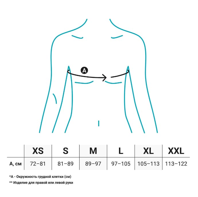 Правильно подобранный размер обеспечивает надежную фиксацию, оптимальное отведение плеча и комфорт при ношении.